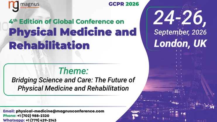 The 4th Edition of Global Conference on Physical Medicine and Rehabilitation (GCPR 2026) will take place September 24-26, 2026, in London, UK and virtually. Engage with experts, exchange ideas, and advance professional knowledge in rehabilitation and physical medicine.