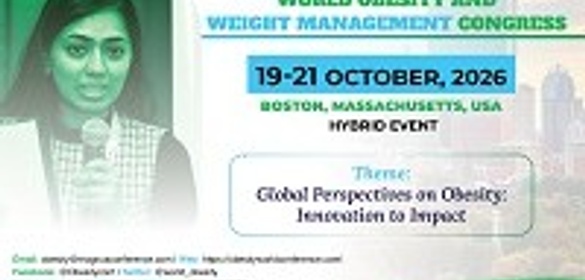 The 6th Edition of World Obesity and Weight Management Congress (WOC 2026) will be held as a hybrid international event from October 19-21, 2026, at Hilton Boston/Woburn in Boston, MA, USA, and Online. It unites experts working to identify proven solutions for reducing obesity risks and improving weight-health outcomes globally.