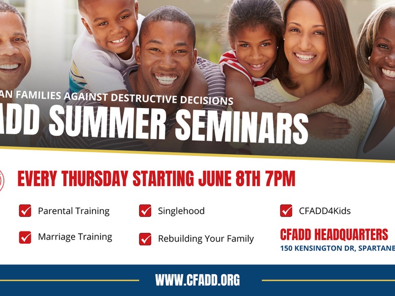 Christian Families Against Destructive Decisions mission is to influence the building and sustaining of strong families and strong generational heritages by promoting a biblical worldview and a God first lifestyle. All of the pain, grief, sorrow and sin in the world is the result of just one wrong decision. Every day we make hundreds of decisions that determine what we say and do. CFADD seeks to educate the public of the benefits and consequences of decisions that affect them and their loved ones, and to provide resources, strategies, and principles that would aid them in making good sound decisions. For no good action can be taken unless it is preceded by a good decision, and each good decision is an investment in a great future.