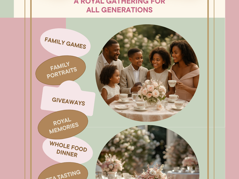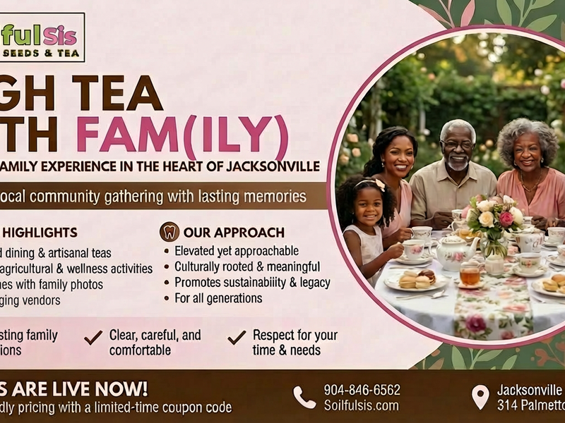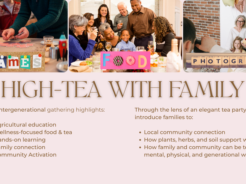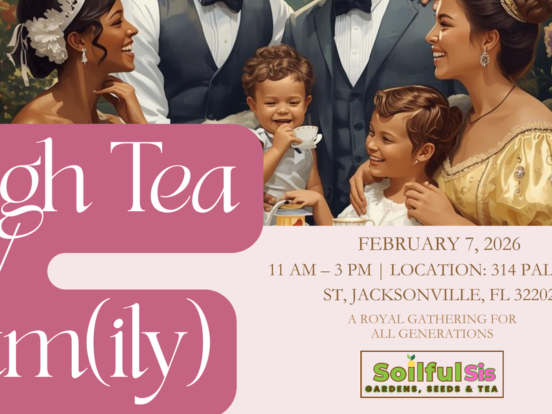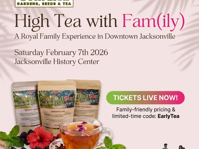 Join Soilful Sis for an elegant, family-forward tea party blended with the heart of a family agricultural fair. This royal-inspired gathering celebrates connection, legacy, and hands-on learning. Families will enjoy a curated high-tea experience paired with interactive agricultural activities, whole-food dining, artisanal teas, professional photos, and community-centered fun designed for every type of family unit.