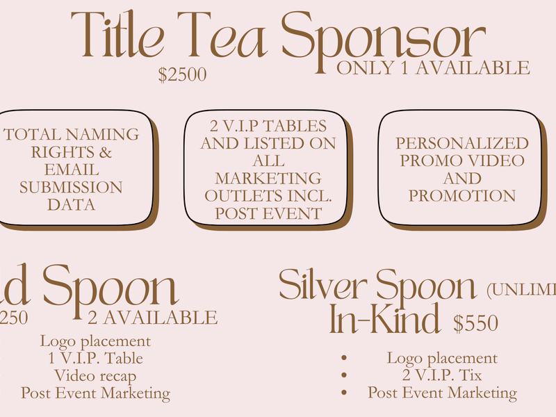 https://www.sponsormyevent.com/high-tea-with-family-jacksonville✨ What We Offer In-Kind Product Sponsors In exchange for donated products or materials, sponsors receive: Brand visibility at a high-engagement, family-centered event (up to 100 guests) Product placement in VIP gift bags and/or guest takeaway areas (based on quantity and fit) Recognition on event signage and sponsor boards Social media mentions before and/or after the event Brand acknowledgment during the event program Opportunity to introduce your product to families who value quality, intention, and community