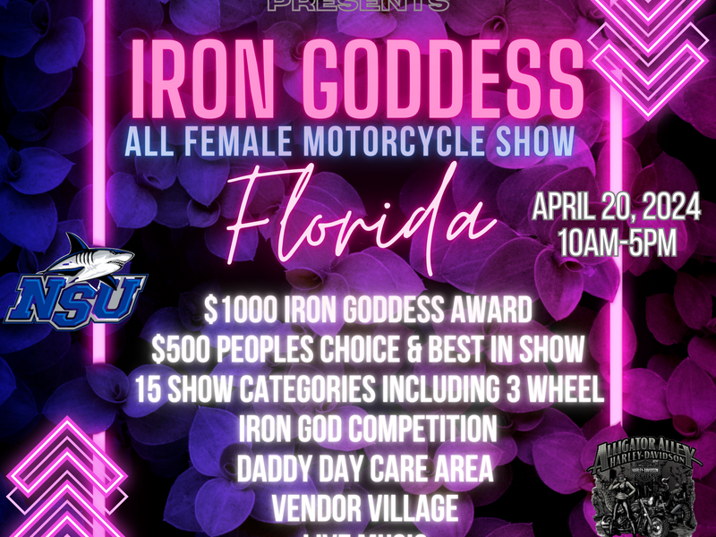 Iron Goddess Motorcycle Show is a first of its kind. We are an all female motorcycle show. All spectators are welcome but only female owned bikes are on display. With a record breaking number our first show had over 632 women show up on motorcycles and over 2000 spectators. In a male dominated industry this show was a breath of fresh air and much needed in the motorcycle community. It was such a hit that we are going on tour in 2024 with a 7 state tour.